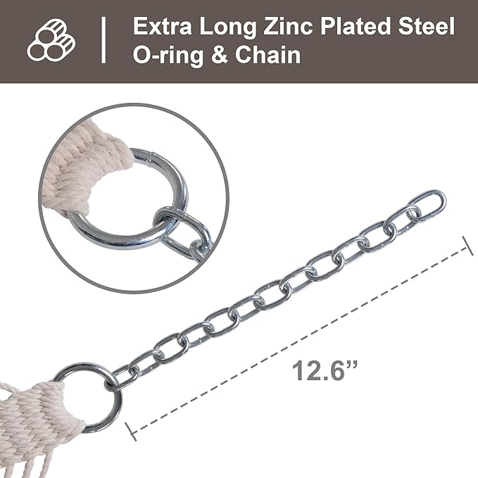 - Easy to Use: Features 12.6 inch chains, you can attach the hammock to a hammock stand or hang it between two trees. It’s perfect for garden, patio, backyard, balcony, and more. A carrying bag is included, so it’s easy to store and take it for a trip. You can search ASIN B09ZL9H5L2 for stand