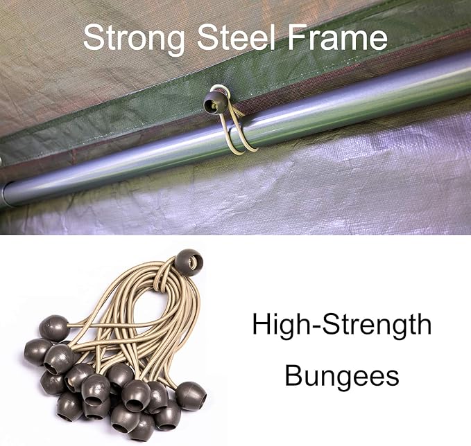 - ·Perfect assembly accessories: The carport kit is equipped with heavy-duty elastic cords. The fabric of the carport covers each pole, which can better fix the tarpaulin cover on the frame. A strong foot base provide strong stability for the whole car tent.