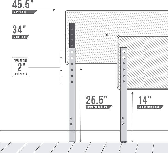 - COMPATIBLE WITH MOST BED FRAMES – Fits all Lucid bed frames and most other beds. Use the diamond tufted headboard to attach to King bed or use wall mount. Height adjusts in two-inch increments, measuring from 34 inches minimum to 46 inches maximum.