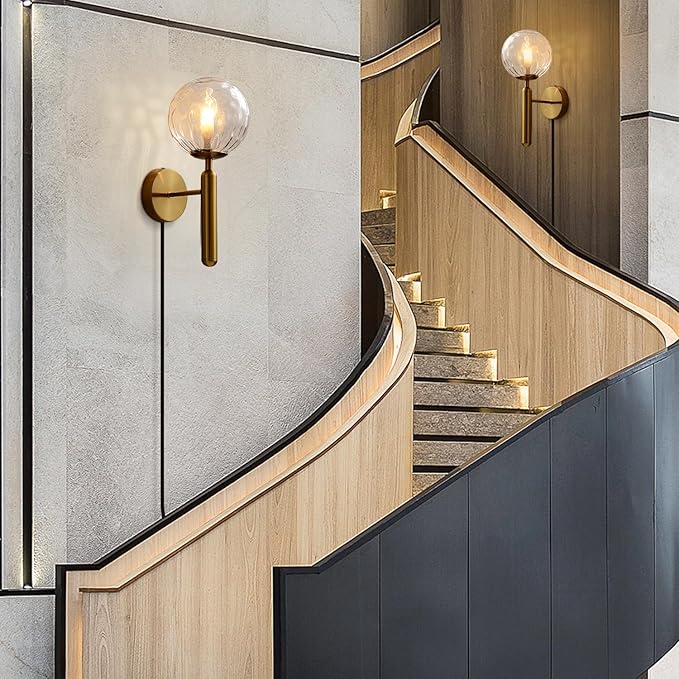 KCO Lighting Plug in Globe Wall Light Vintage Industrial Wall Sconce Lighting Fixture with On/Off Switch, Metal Wall Lamp for Bedroom Living Room Hallway,(Clear Plug in)
