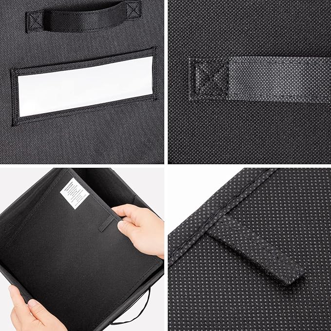 artsdi 11 Inch Storage Cube,Storage bin,cube storage (Set of 10) Foldable Fabric Cube Storage Bins with 10 Labels Window Cards & a Pen,Baskets Containers for Shelves,Closet Organizers Box,Black
