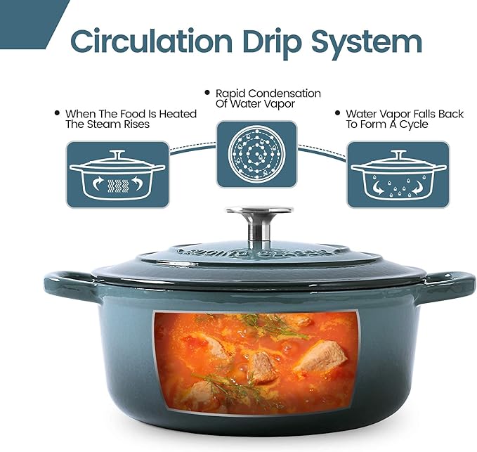 - Self circulation water locking: The dutch oven pot cover is thick and well sealed, which makes it difficult to lose water