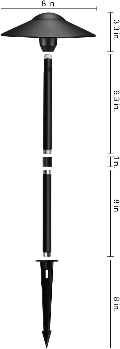 - EASY TO INSTALL – This landscape path lights with 8inch heavy-duty ABS ground stake and Two 9inch aluminium stems which can be connected easily. You can decide your path light's height by connecting one stem or two stems. Light Fixture pre-wired with UL listed direct burial Wire/Cable, you can connect the fixture easily. And extra cable connector required for installation(NOT INCLUDED with this fixture).