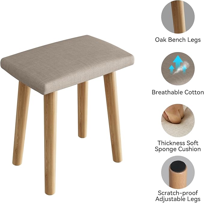 - Comfortable Cushioned Stool: The stool of this vanity is made with high-density sponge to ensure more comfort when you sit. The solid wood legs also ensure the support of the stool