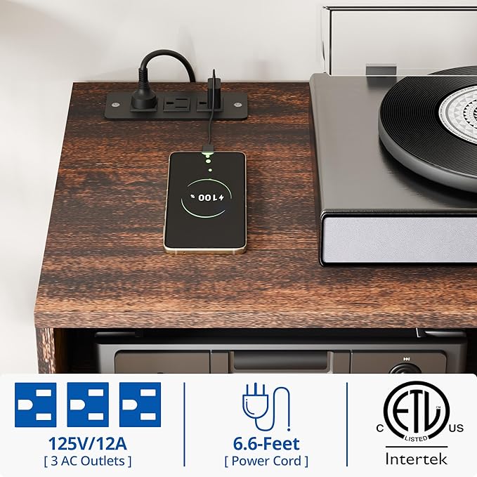 - Power Outlets and Cable Management: Equipped with 3 AC power outlets (125V/12A), this TV entertainment center doubles as a convenient charging station for your TV, Wi-Fi router, and gaming equipment.There’re 2 holes in the back of this wooden TV stand, you can place a game console, router, or other device and hide their cables, keeping the place tidy