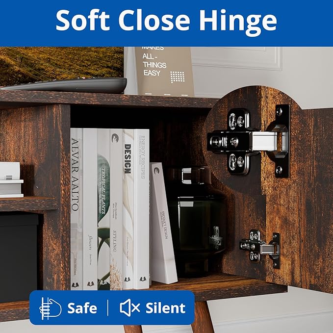 Cozy Castle TV Stand for 48 Inch TV, Mid Century Modern Entertainment Center with Storage Cabinet, TV Media Console for Living Room, Bedroom, Rustic Brown