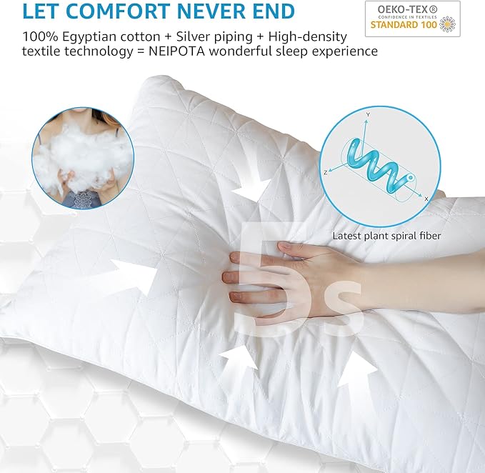 - Your First Choice For Sleep: Choice by more than 4,000 hotels in the world, We are so confident that the NEIPOTA luxury pillows are what you have been looking for. Every pillows for sleeping will enjoy a 120-trial sleeping experience and 1 year to protect your pillows against manufacturer defects
