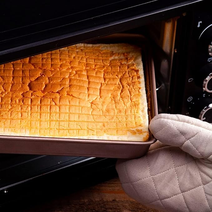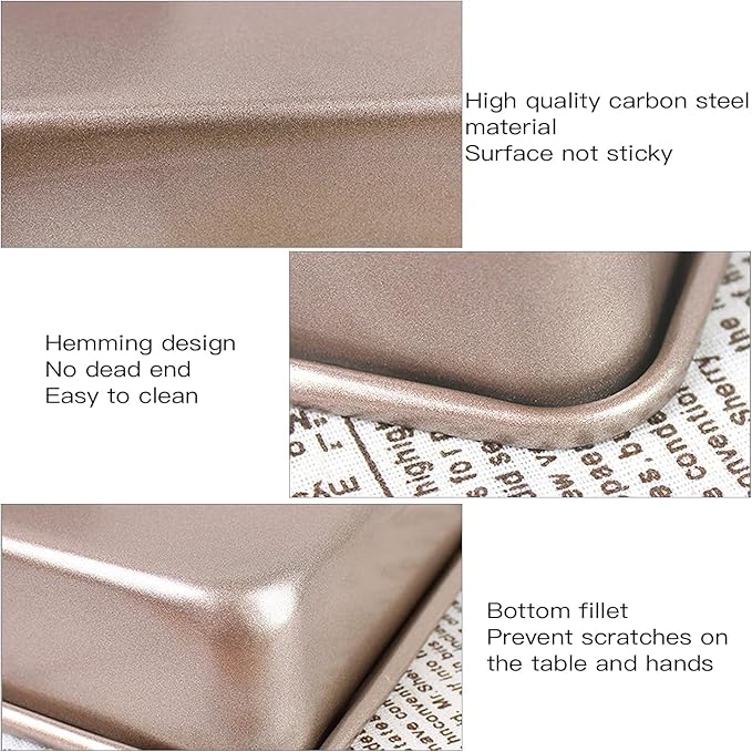 - Non-stick, Easy to Clean- The non-stick baking sheet has great mirror finish to reduce the risk of food sticking, easy to release the food while effectively reducing grease adsorption, makes it easy to clean up, just rinse the rectangle cake pan oven pan under water or run through the dishwasher