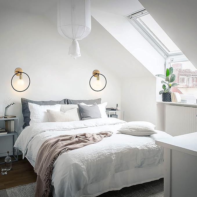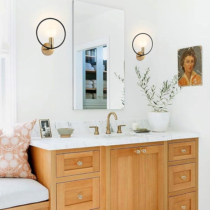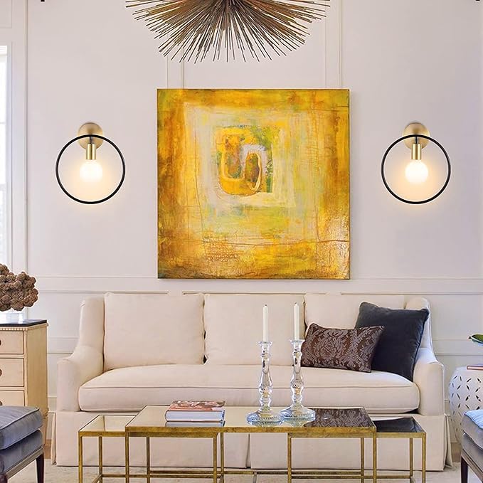 - 2 Pack& Elegant Chic Design: The eye-catching sconce featuring a matte black 11” circular frame, surrounding a brushed brass base, simplicity and classic, add a stylish look while illuminates your room to create the perfect atmosphere. Ideal for multiple styles including industrial, farmhouse or contemporary.