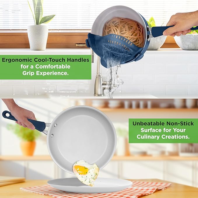 - NON-STICK SURFACE: This cookware set boasts a durable, PFOA/PFOS-free non-stick coating, ensuring effortless food release, easy cleaning, and healthier cooking. Its heat-resistant lacquer exterior stands up well to high temperatures