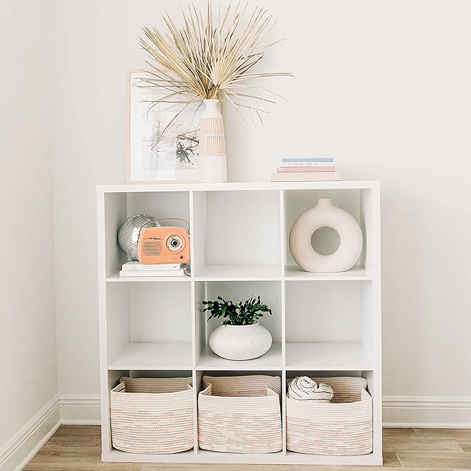 - Elegant Cotton Coiled Rope Cubes Design – A vintage feel with a modern touch these coiled rope baskets are made from tightly-woven cotton that’s strong, and more durable and resistant than regular wicker storage basket, linen closet organizers and storage baskets with lid.