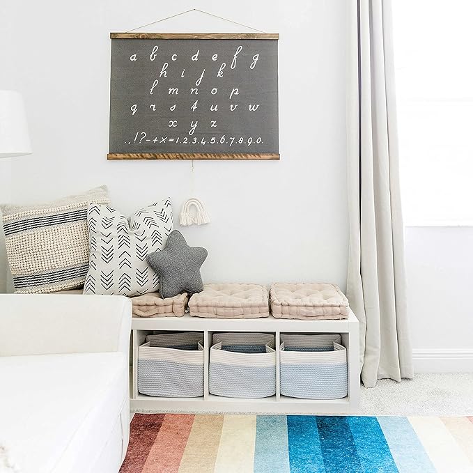 - Vintage Colors to Match Every Style – Charming and stylish these versatile storage organizer bins come in 7 exclusive colors to match your home closet or style including 3-tone gray, blue / off-white, rainbow / off-white, pink / off-white, brown / off-white, gray / black, gray / honey, gray / off-white, honey / off-white, light honey / off-white, black, white and rainbow.