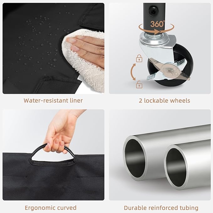 - HEAVY DUTY FRAME: 6 metal horizontal bars keep the laundry hamper sorter frame more stable; the horizontal bar at the bottom of the rolling laundry sorter prevents the bag from sagging when loaded with laundry