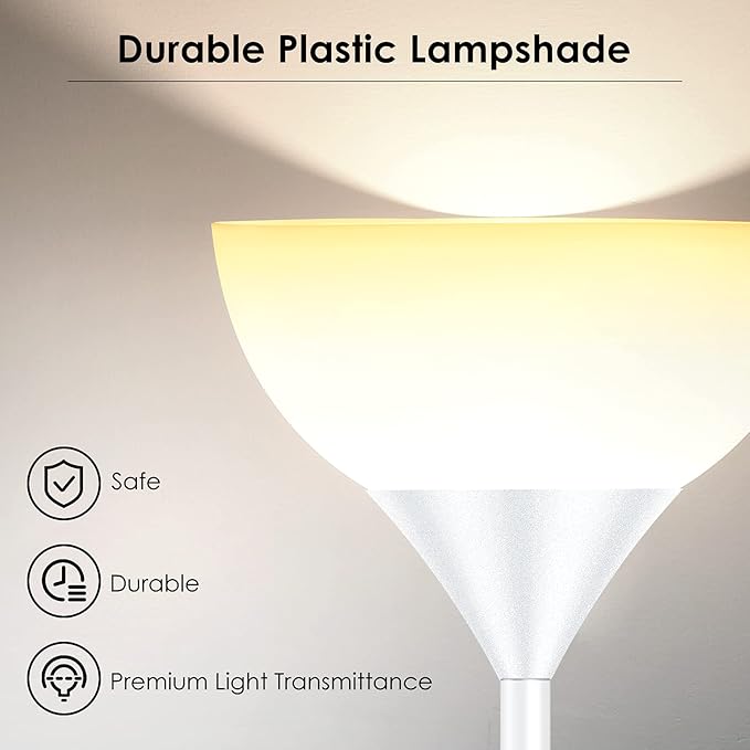 - Safe and Easy Assembly; We take safety seriously into consideration, with a stable base and metal pole, this lamp for bedroom tall provides good stability from falling, which is safe for your baby and pet; it can also be easily placed in the bedroom, living room, and other places according to your wishes; Simple and easy to assemble within 5 mins without extra tools, you just need to screw all the parts of the LED floor light working together by following the instruction video on the page
