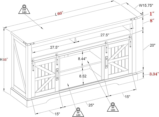 - Ample and Flexible Storage: Each storage cabinet has adjustable end shelves which offer lots of storage, while the 6.3 inch stationary middle shelves are roomy for housing media equipment. Two sliding barn doors can easily be positioned as you desire. For an uncluttered look, you can slide the doors over the two ends and use those areas for hidden storage.