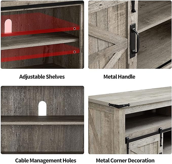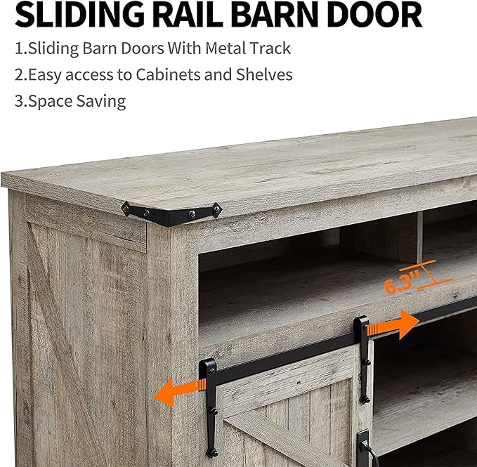 - Farmhouse Style TV Table: OKD tv stand for bedroom features an exquisite sliding barn door and retro metal decor, meanwhile its unique natural variations design in grain, color, and texture, add a touch of country style to your living area, Matching perfectly with other furniture in the OKD living room furniture series.