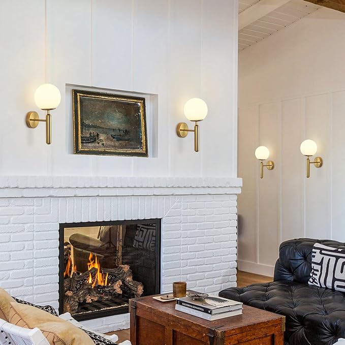 - 【Modern Minimalist Design】Modern Nordic geometric ball wall sconce includes hand-blown glass globe shade and high-quality golden metal lamp body, the whole light fixture is extremely minimalist, adding a nice addition to your home space. Milk glass shade creating a soft beautiful glow, the white frosted glass shades ensure just the right amount of light for any mood you're in.