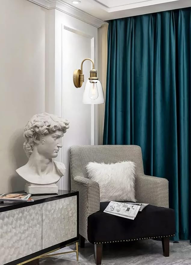 Yosoan 1-Light Brass Modern Vintage Indoor Wall Sconce, Vanity Single Luxury Hardwired Retro Textured Clear Oval Cone Glass Shade with Industrial Gooseneck Curved Rod Bathroom Lamp(Antique)