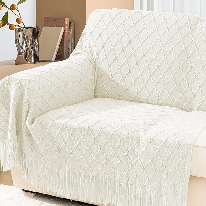 - 【GIFT IDEAS】: Special knitted diamond patterns add a unique accent to your room and people draping it as a shawl. Very suitable for tasteful homeowners. Throw blanket for women, classic but not too tacky as a housewarming gift. Tips: Due to different lighting, display settings, or resolutions, the difference in color happens. We are dying to show the color. To do so, one of the images shows the color difference in different lighting. Hope these instructions would help you to buy a throw.