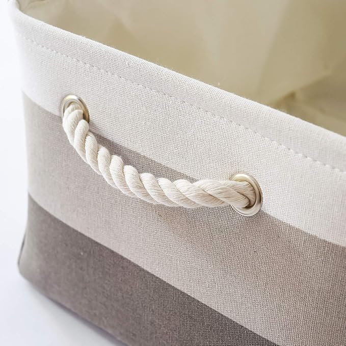 - High quality: The outer material of the storage box is made of imitation linen, with thickened EVA in the middle, refusing to sag, high quality can keep the storage box firm and stylish. The lining is thin cotton, easy to clean, just wipe with a wet sponge or cloth. The handle material is made of durable cotton and linen handle, wide and not strangled hands.