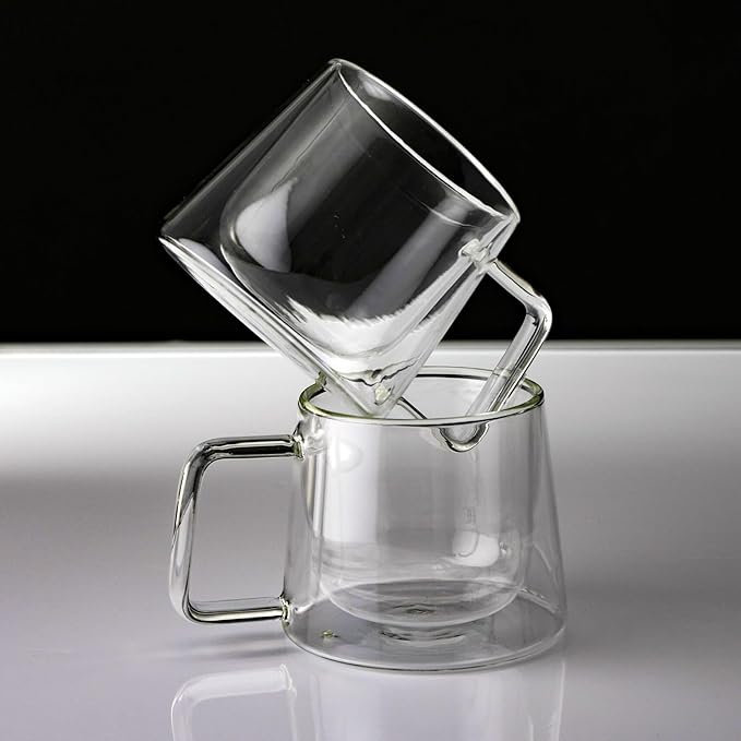 - DOUBLE WALL DESIGN: Designed with double-walled insulation to keep your coffee or Tea hotter for longer while keeping your hand nice and cool. Enjoy a better-tasting cafe latte in this glass, Our unique shape makes your drink look suspended-in-air. You can also leave it in the freezer to have a chilled, drinking-ready glass on hand for cold beverages as well.