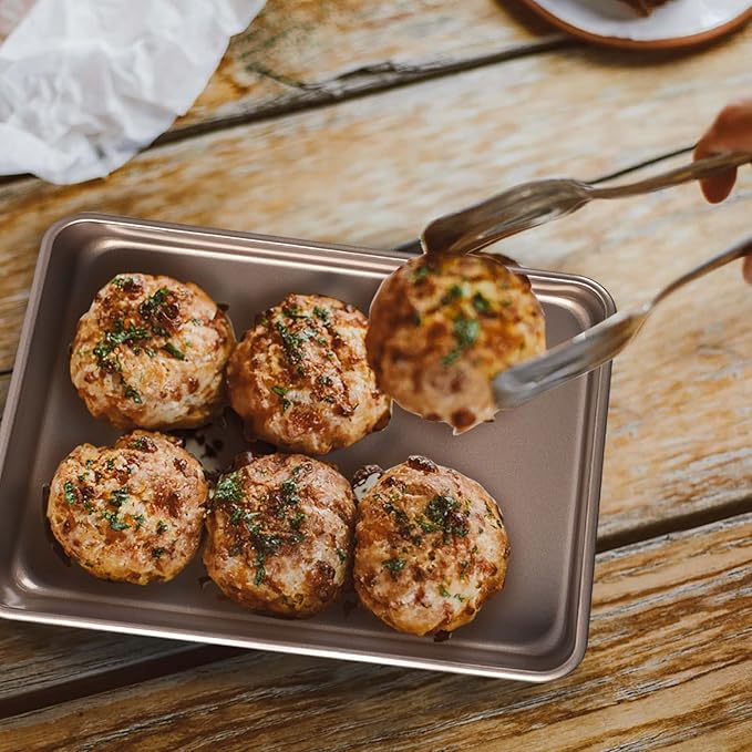 - 【DURABLE MATERIAL】Heat resistant to 440℉, heavy duty carbon steel material prevents water buildup and rusting, but cannot be immersed for long periods of time, and it is recommended to avoid prolonged contact with strong acids when using the baking pans in order to extend their life.