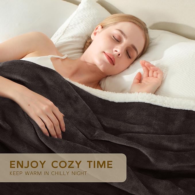 BEAUTEX Sherpa Fleece Throw Blankets, Soft Fluffy Flannel Plush Blanket and Throw, Fuzzy Cozy Coffee Cuddle Blankets for Couch Bed Sofa Adults (50" x 60", Coffee)