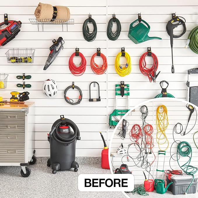 - SUPER EASY – Use these Easy-Carry Storage Straps to organize, carry, and hang, heavy-duty extension cords, RV cords, generator cords, electrical cords and cables, garden and water hoses, air hoses, pool hoses, or building materials.