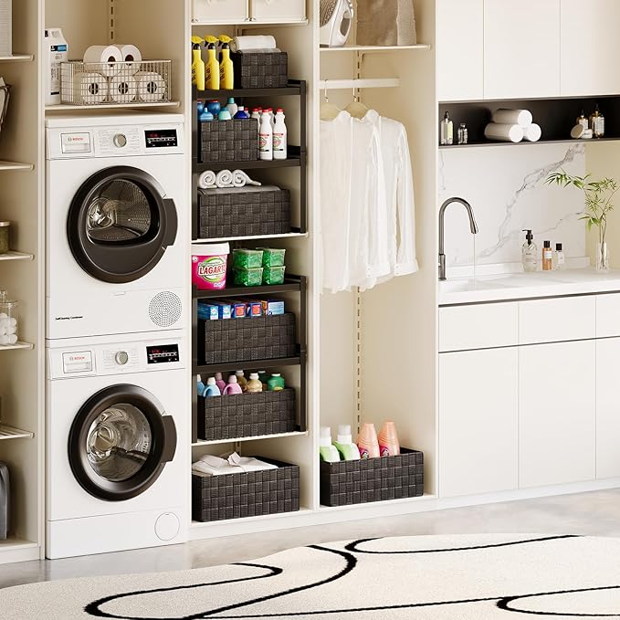 Woven Storage Baskets, Storage Bins, Cube Basket Container Baskets Storage Boxes Organizers for Clothes /Shelves/ Closet, Set of 6 (Black)