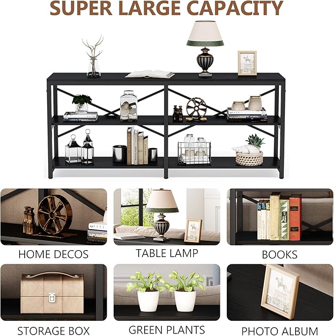 Tribesigns 70.9 Inch Extra Long Console Table, Modern Sofa Table Behind Couch Table with Storage Shelves, 3-Tier Industrial Hallway Entryway Table for Living Room, 3 Shelf Bookshelf(Black)