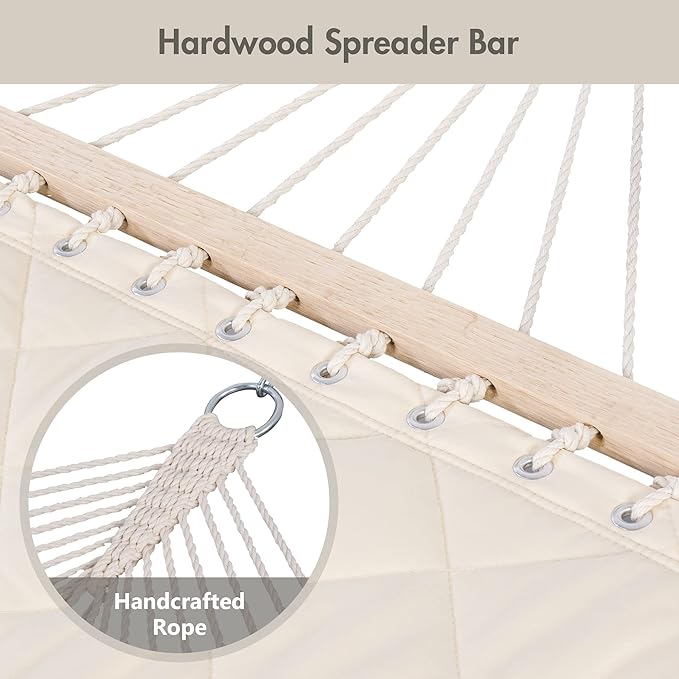 ANOW Two Person Hammock with Spreader Bars and Detachable Pillow, Heavy Duty Hammock for Outdoors Indoors, 450 LBS Weight Capacity, Cream