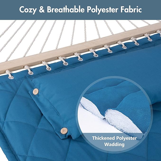 ANOW Double Hammock with 12 Feet Heavy Duty Steel Stand Combo, 2 Person Quilted Hammock with Stand for Outside, 450 LBS Weight Capacity, Blue