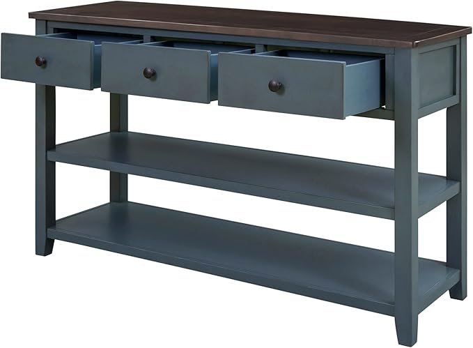 Knocbel Entryway Console Table with 3 Drawers and Open Shelves, Entry Hallway Foyer Sofa Long Table, 220lbs Weight Capacity, 50" L x 16" W x 30" H (Navy)