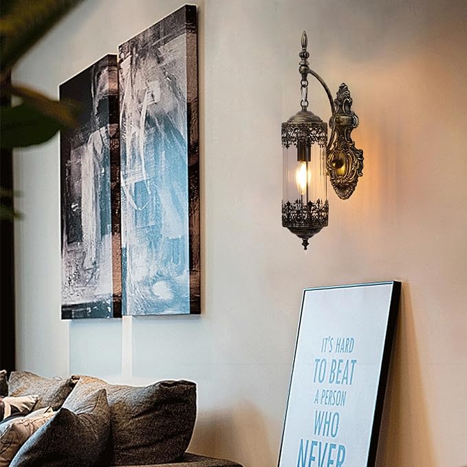 - 【Perfect for Your Home】This vintage farmhouse wall sconce complements a variety of decor themes, from Gothic and industrial to rustic and farmhouse styles. The retro glass wall lamp intricate design and refined shape allow it to blend seamlessly with modern decor, making it a versatile addition for living rooms, bedrooms, entry, fireplaces, and hallway.