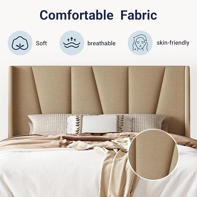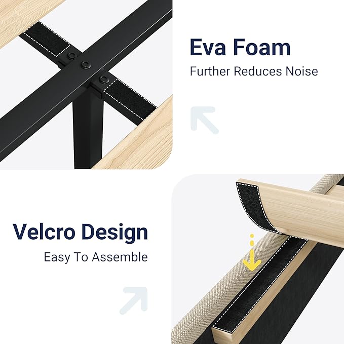 - Sturdy Structure: High-density wooden slats and sturdy steel structures enhance the stability of the upholstered bed. The wingback design also makes this bed more stable and not easy to shake