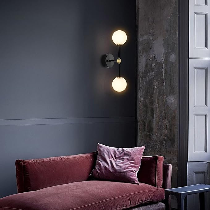 - Modern Minimalist Design: Crafted from metal, The eye-catching sconces featuring 2 4.72”white globe glass shade,simplicity and elegant. Add a stylish look while illuminates your room to create the perfect atmosphere. Ideal for multiple styles including industrial, farmhouse or contemporary.