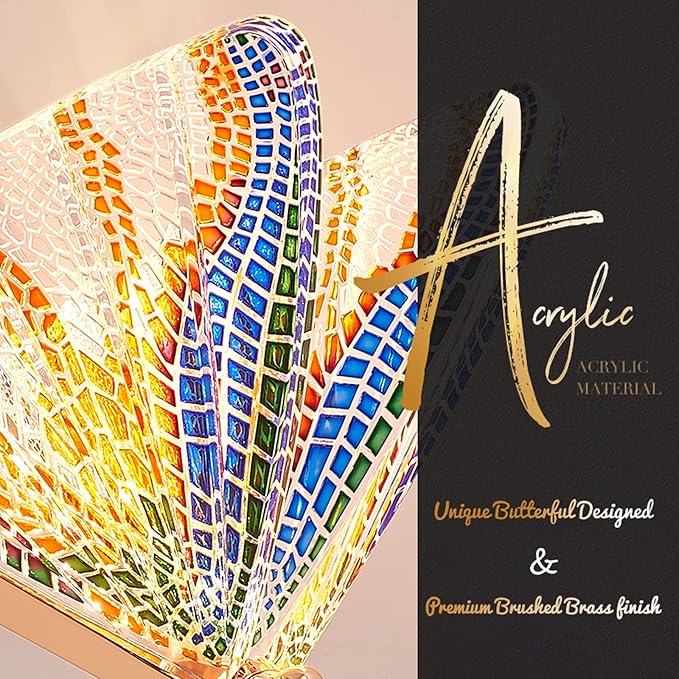 - 🎈Golden floor lamp carved lampshade: Unique floor lamps features two acrylic Tiffany Style butterfly wing lampshades with Light-transmitting design on the back. This exquisite design adds depth to the visual appeal and creates a romantic and elegant ambiance in your room. While the light passing through the wings, it projects unique patterns in the room.