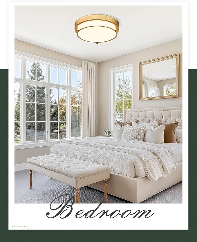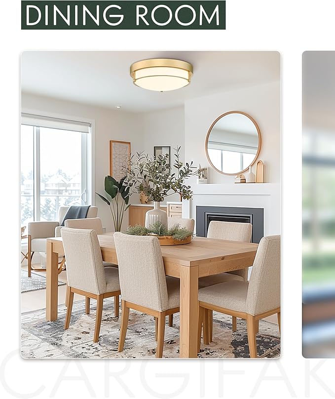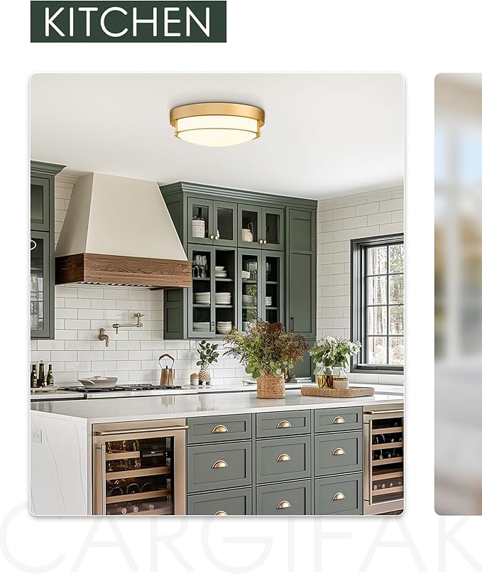 - MODERN DESIGN: This light fixtures ceiling mount is made of high-quality metal frame and frosted glass, which is durable and non-glare. Simple shape and brass gold finish design, can perfectly match any decoration. The semi flush mount ceiling light not only provides you with lighting, but also enhances your sense of life atmosphere.