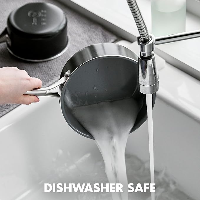 GreenPan Swift Healthy Ceramic Nonstick, 1QT and 2QT Saucepan Set, Stainless Steel Handle, PFAS-Free, Dishwasher Safe, Oven Safe, Black