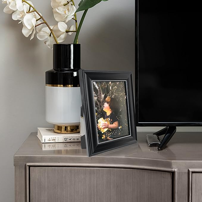 GraduationMall 5x7 Picture Frames, Real Glass, Display Photos for Wall or Tabletop, Black with Silver Beads, 2-Pack