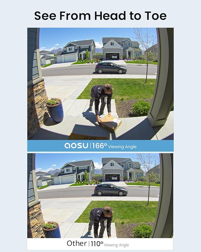 - 166° Field of View: You could see a person from head to toe or a package on the ground, there are no blind spots.