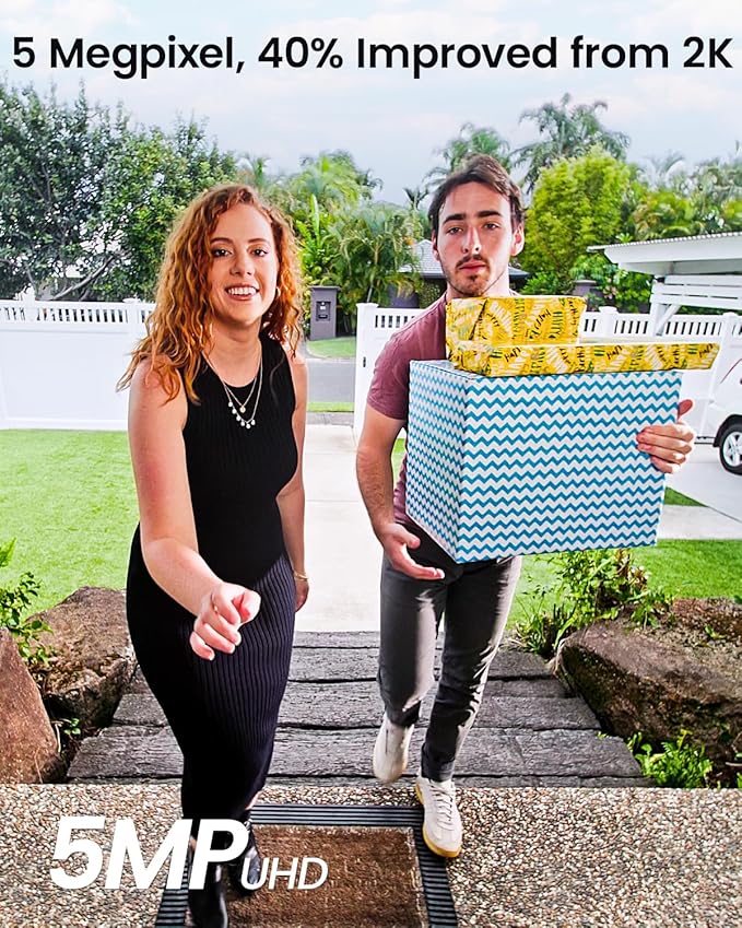 - 5MP UHD, 40% Improved From 2k: Adopted 7 pieces of an advanced ultra-clear optical glass lens ensures you get sharp, detailed images even in low-light or bright conditions.