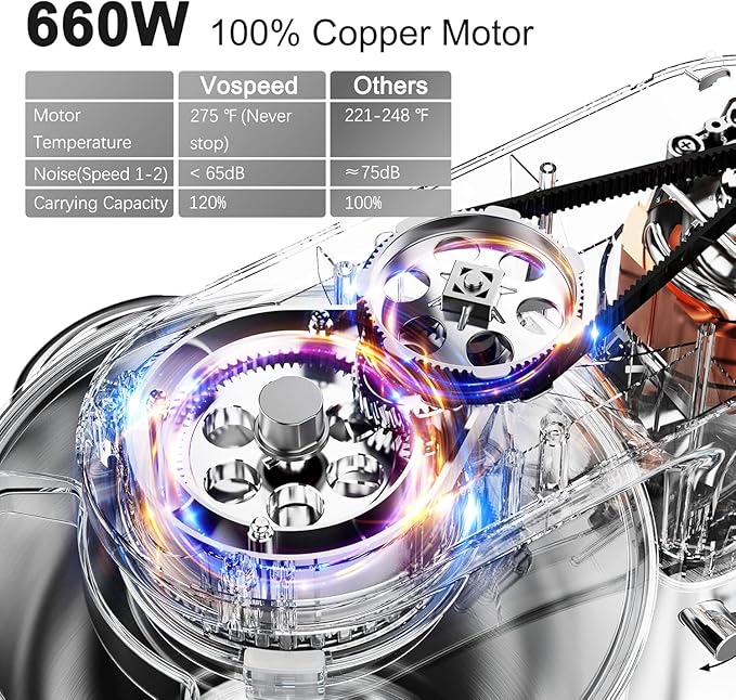 - Vospeed Stand Mixer: ETL-certified, with 24/7 support. Bake, blend, & grind with ease. Ideal for home use or gifts. Enjoy flawless mixing & reliable assistance.