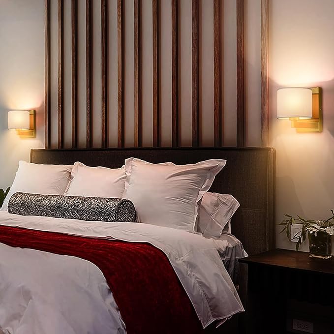 - 💖Mid-Century Modern Gold Wall Sconce: This wall sconce consists of rectangle metal backplate of brass gold finish and a drum shape white fabric lamp shade, adding a mid century modern statement to your interior. And the E26 lamp holder is ceramic glazed design, high quality and durable.