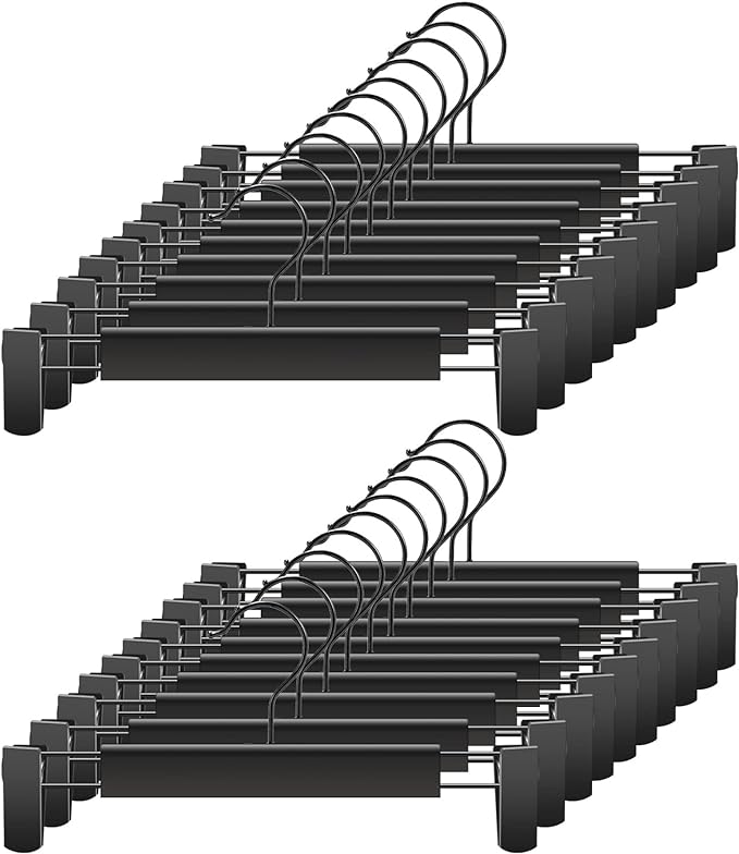 Clothes Pants Hangers, Space-Saving Skirt Holders with 360 ° Swivel Hooks, Adjustable Clips, Trouser Hangers, Clothes Coat Garment Jeans Hangers (20 Pack, Black)