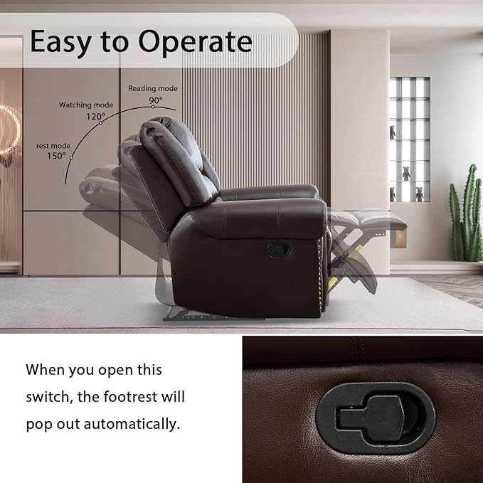 - 【Modern and Classic Design】Vintage rivets decoration increases the classic and luxurious style of the manual recliner. They can be placed in the living room, bedroom, lounge, home theater room. Just imagine, when you get together with your family and enjoy the fun of this recliner, watching, reading, napping. What a pleasure it is?