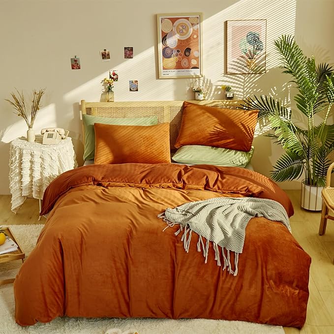 - 💙【Design & Target】 :The elegant rust caramel burnt orange velvet comforter set will not cause any harm to your skin since we chose the superior material with soft microfiber filling.give you a comfortable sleep. Lightweight and portable features make your travelling and Business trip convenient, healthy and happy.