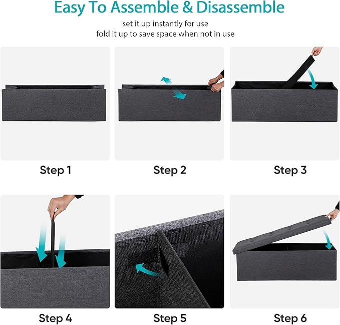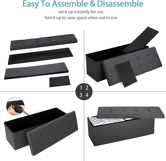 SUPER DEAL Folding Storage Ottoman Bench Foot Rest Storage Chest,15 x 43 x 15 Inches End of Bed Bench with Divider for Living Room Bedroom Entryway, 660 lbs Load Capacity, Linen Fabric, Dark Grey
