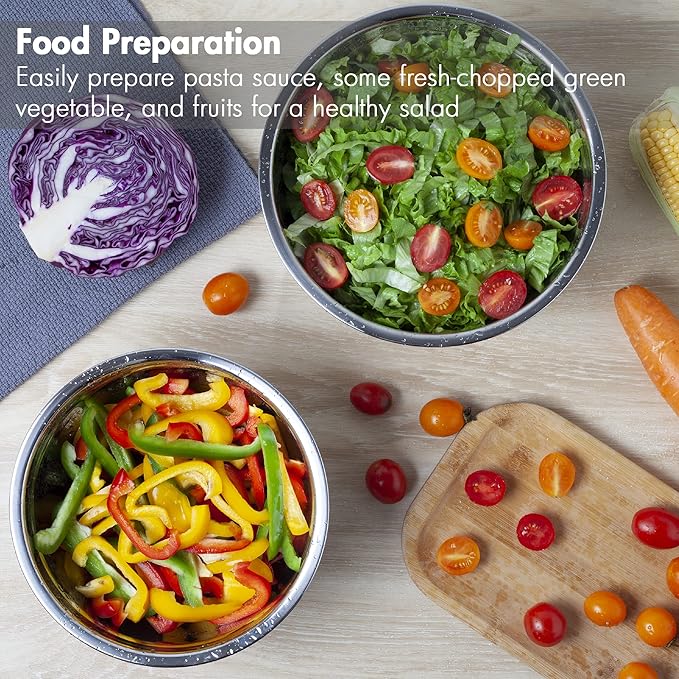 - Durable and High Quality — Made of high-quality stainless steel for lasting use, which is resistant and rustproof. These mixing bowls are dishwasher safe, more convenient for you and your family.