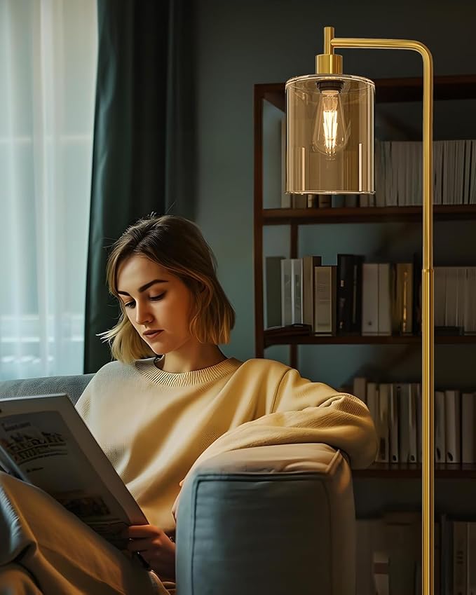 - Advanced Glass Shade: With advanced glass shade, our floor lamp not only has perfect light transmission but also not fragile because of the thickening glass material; With the mixed design of modern and vintage, this standing lamp can match a wide range of home styles, contemporary apartment, rustic farmhouse, or mid-century room styles; The stylish design of this industrial floor lamp makes it more than a lamp, which can also be decorative floor lamps for living room, office, and bedroom